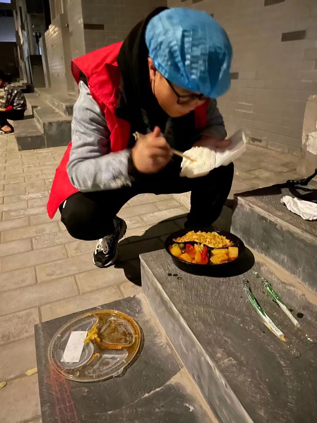 “現(xiàn)場需要做的工作非常多,有些物資還在路上,有的居民還不知道怎么檢測(cè),還有一些老人沒有手機(jī)等等。”李丹陽說。和他一起做志愿服務(wù)的,還有他的妻子寇淑女。“她負(fù)責(zé)采集樣本、做記錄等工作。為了少上廁所,她一整個(gè)白天沒吃沒喝,直到晚上才吃了幾口米飯,幾乎沒怎么喝水。