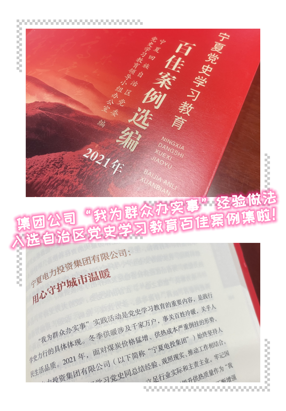 集團公司“我為群眾辦實事”的優(yōu)秀做法入選《寧夏黨史學習教育百佳案例選編》