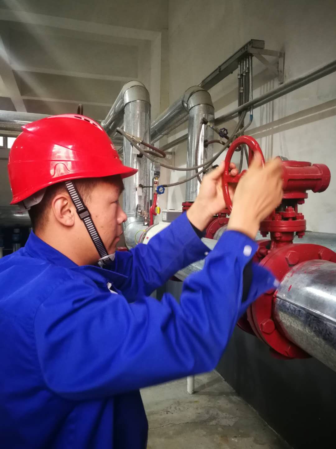 10月17日,熱力公司生產(chǎn)運(yùn)行部人員開栓供熱。 蔣 鑫 攝